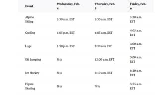 Events begin in the days before Feb. 6 to accommodate full tournament formats. Italy observes Central European Time (six hours ahead of New York), so U.S. viewers should convert start times when planning viewing or live bets.